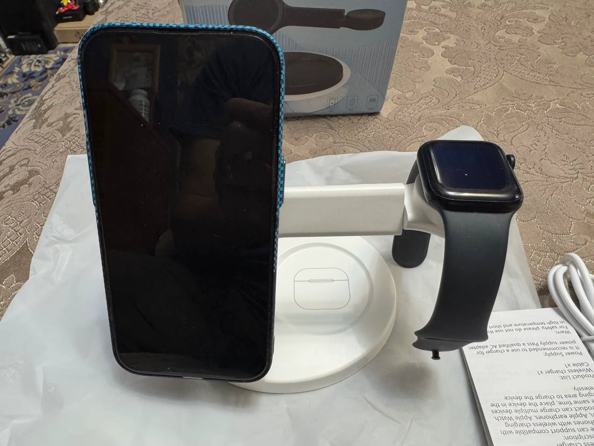 Answer 3: No, the charging stand is designed to be compact and sleek, taking up minimal space on your desk or nightstand. Its multifunctional design allows you to charge three devices in one tidy unit, effectively reducing clutter and enhancing your space.